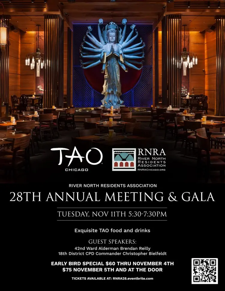 JOIN USRNRA 28th Annual Meetingat TAO ChicagoNOVEMBER 11thTake Advantage of our Early Bird Special!Tickets $60 Early Bird thru Nov 4th $75 from Nov 5th and at the door!Are you a resident of an RNRA Member Building? Check with your Property Manager for Members only discount code.Amazing Raffle Prizes